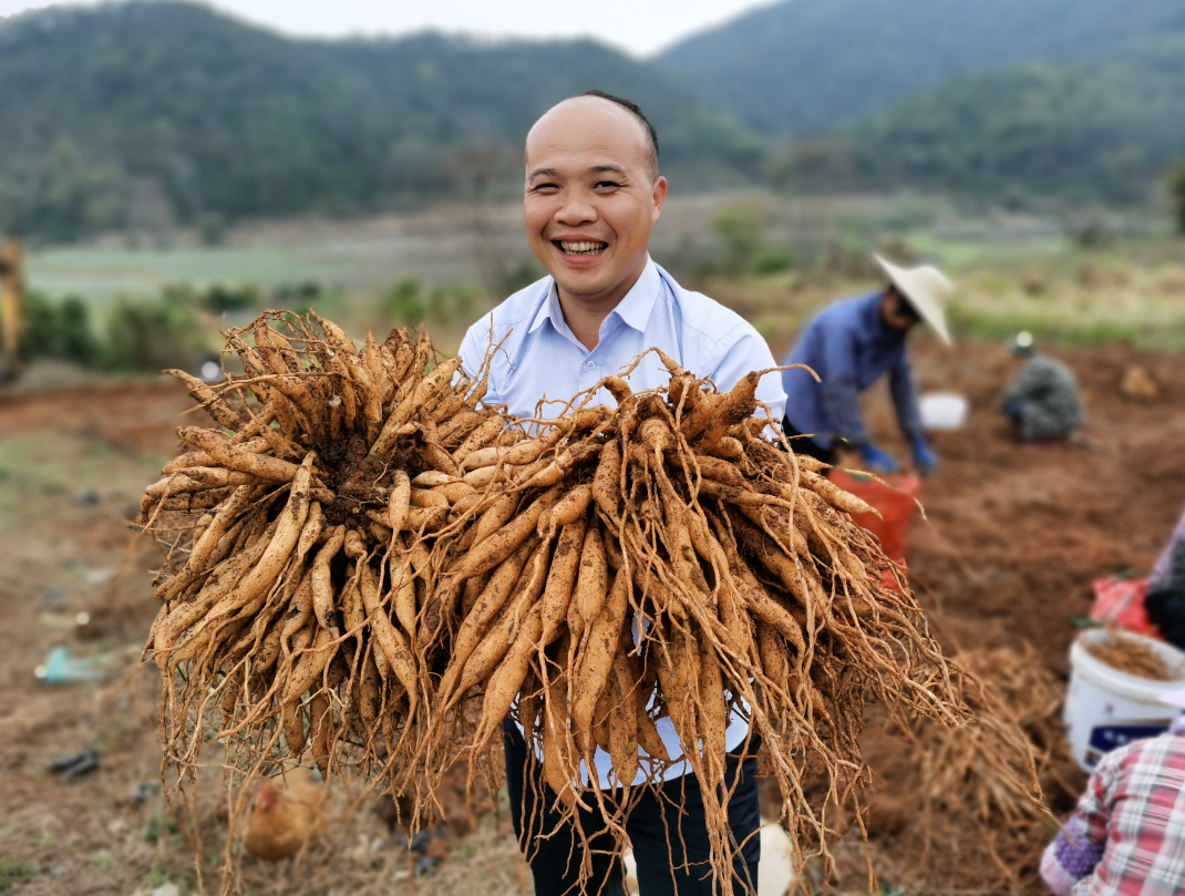 德庆县金星村的种植户李国就是这一模式的受益者。他不仅在德康农业帮工,前两年还租了50亩地自己种植。“百部三年一收,每亩可以产5000-6000斤,一斤2.5元左右,还有分红1万元。”一年下来,李国能有10多万元的收入。梁木强表示,在德康农业的带动下,合作农户的人均年收入从2021年的1.8万元/亩增长到2023年的2.5万元/亩,增幅高达39%。